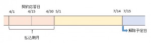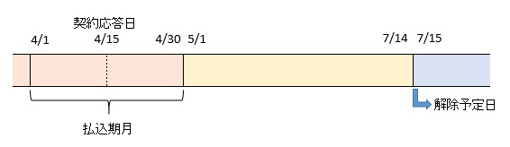 具体的には、下図の通り、払込期月の経過後3カ月目の月ごと応当日が解除予定日となります。