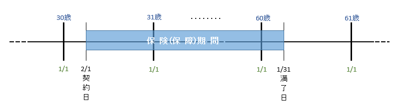 例えば、30歳で定期保険に加入して、60歳満期の場合は、いつ保険契約が満了するのでしょうか?