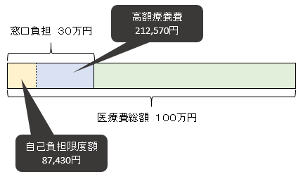 上記の例だと、自己負担額の約7割の212,570円が還付されます。実際に必要な医療費は、87,430円に抑えられます。
