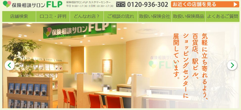 「保険相談サロンFLP」大丸京都店です。取扱保険会社は、生損保25社です。