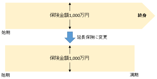 例えば、終身保険に医療特約が付帯された契約を延長保険に変更すると、医療特約は消滅します。