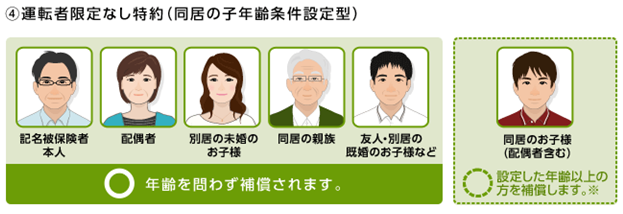 4)運転者限定なし特約(同居の子年齢条件設定型)
