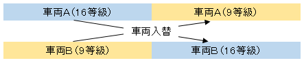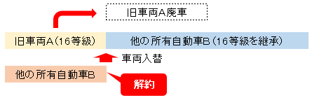 例)車両A(16等級)と車両B(9等級)の2台の車を所有していて下記のような車両入替え