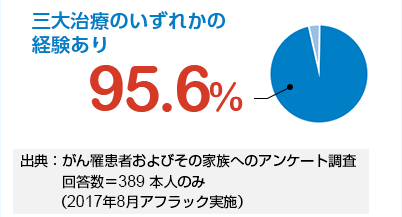 通院保障が「無制限」となるには、上記のような三大治療を受けていることが条件になりますが、がん治療を受けている方の9割以上が上記の3大治療を受けているというデータがあります。