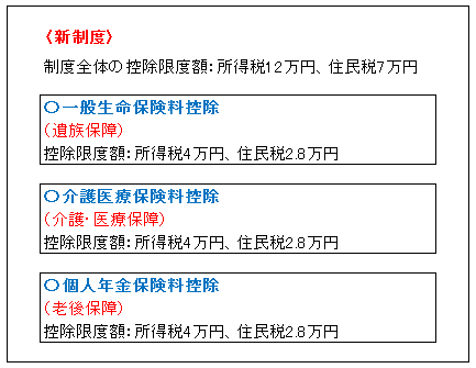 また、新制度+旧制度の合計した全体の控除限度額は所得税で12万円、住民税で7万円です。