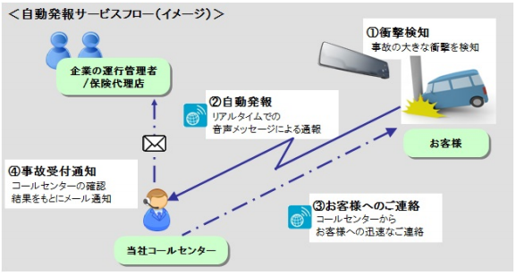 上記いずれの場合にも、事故受付完了後に代理店ならびに企業の運行管理者宛てに事故受付情報をメールにて通知します。