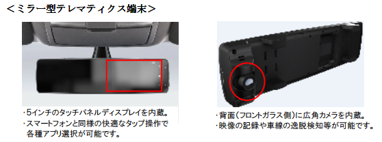 本サービスは、「ミラー型テレマティクス端末」を搭載した車両(二輪・原付を除く)に対して提供されます。なお、保険契約車両のうち、任意の車両で本サービスの導入が可能です(保険契約全車両に本サーヒスを導入する必要はありません)。