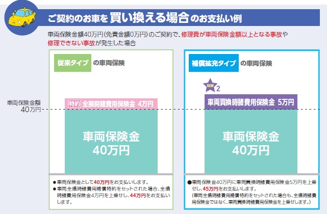 補償拡充タイプの車両保険を付帯できるのは、車両保険金額が50万円未満の契約です。車が古くなると、保険金額は下がってきますので、そのような契約向けの改定です。